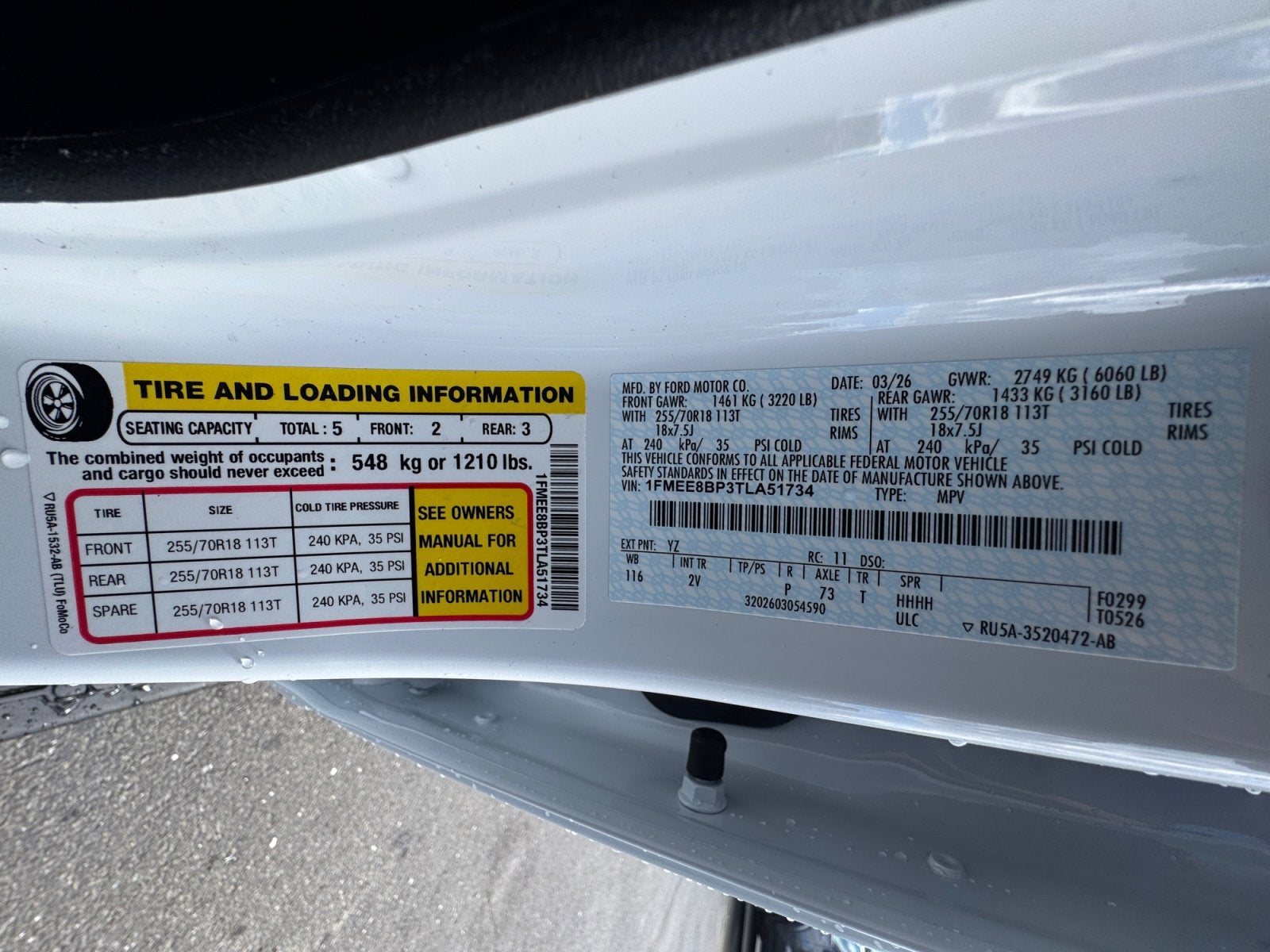 - Tires: P255/70R18 A/T -inc: full size spare tire w/TPMS