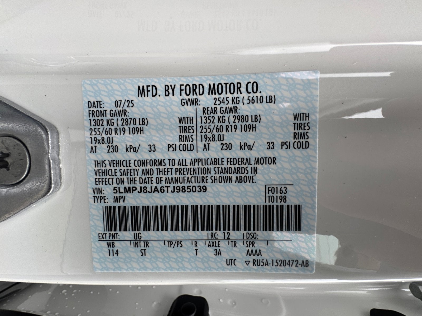 - Tires: 255/60R19 All-Season BSW